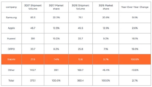 Lupta pare să devină tot mai interesantă pe piața de smartphone, acolo unde Xiaomi pare să își fi făcut loc în top 5-ul producătorilor de smartphone la nivel global, în detrimentul celor de la Vivo. Compania a anunțat în cadrul evenimentului de lansare oficială a modelelor Xiaomi Redmi 5 și Redmi 5 Plus că a reușit să vândă 26,7 milioane de telefoane smart în cel de-al treilea trimestru al anului 2017, ceea ce înseamnă o creștere de 102,6% față de aceeași perioadă a anului trecut.