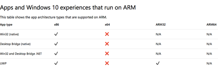 Pe scurt, doar aplicațiile x32 merg în emularea Windows 10 on ARM, cele x64 nu merg.