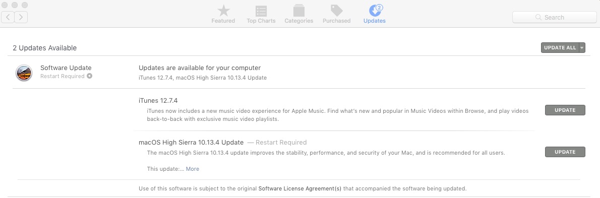 Apple a lansat un nou pachet de update care aduce macOS High Sierra 10.13.4 și aduce îmbunătățiri legate de stabilitate, performanță și securitate (împreună cu iTunes 12.7.4).