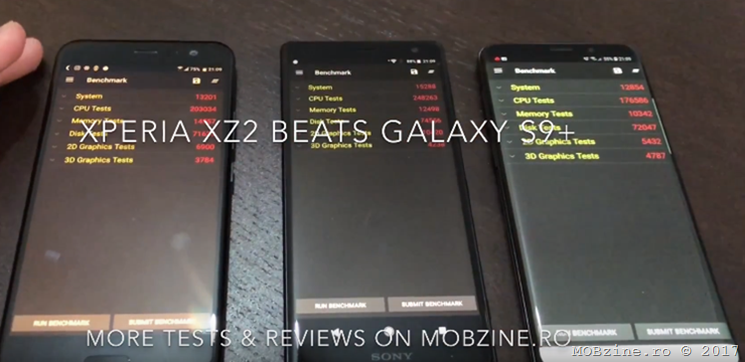 A sosit momentul pentru încă un test: Xperia XZ2 vs Galaxy S9+ vs U11. Care e mai rapid? Pentru că abia am scos din cutie noul flagship al Sony, adică Xperia XZ2 și cum aveam pe masă Galaxy S9+ și HTC U11, am zis că e potrivit să le punem la un test mai complex și le-am trecut prin AnTuTu, PCMark, GeekBench și PassMark ca să vedem performanța Snapdragon 845 vs Exynos 9810 Octa.