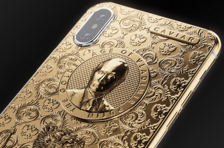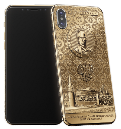 Chiar nu m-am putut abține să nu vă atrag atenția asupra acestui iPhone X Putin Golden Age. Până și numele său mi se pare hilar. Nu că nu m-ar fi distrat și alte terminale spoite cu aur de către compania rusească Caviar. Dar acesta parcă le întrece. Totul este la limita prostiei. De la numele său, iPhone X Putin Golden Age, care marchează începutul vârstei de aur a marelui lider.