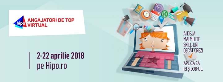 Săptămâna aceasta, până pe 22 aprilie 2018, are loc cea de-a 11- a ediție a târgului de joburi Angajatori de TOP Virtual, un proiect de recrutare online care reunește 140 de angajatori și 6000 de oportunități de carieră. Joburi în IT&C, Customer Support, Inginerie, Finance&Banking, Audit și Consultanță, Retail, HR, Servicii&BPO sunt disponibile pe platforma evenimentului, pe www.hipo.ro. Evenimentul a început pe 2 aprilie, iar până în acest moment au fost înregistrate peste 215.776 de vizite.