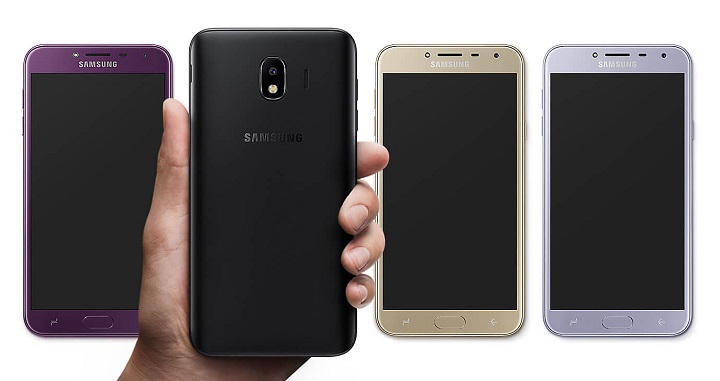 Samsung Galaxy J4 trece la un display clasic (aspect 16:9), cu rezoluție 720p, coboară chipsetul la un Exynos 7570 (procesor quad-core de 1,4 GHz), memoria RAM la 2 GB și stocarea internă la 16 GB. Camera foto principală rămâne la fel, cea frontală scade la 5 megapixeli, dar păstrează flash-ul cu efectele sale. Capacitatea acumulatorului rămâne și ea neschimbată, la 3000 mAh. Galaxy J4 nu are senzor de amprentă.
