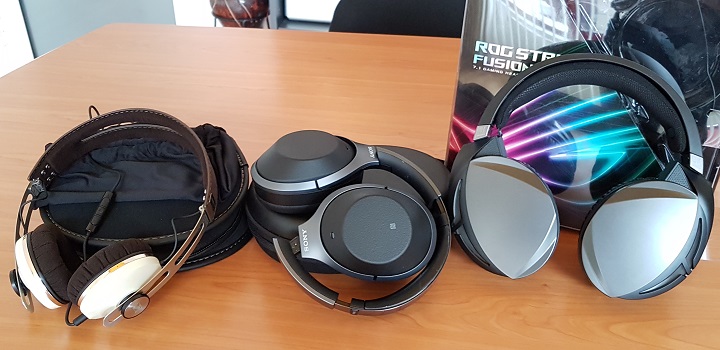 Revenind la Asus ROG Strix Fusion 300, din păcate pentru acest produs, el a venit la teste într-o perioadă în care mă jucam și cu o pereche de căști wireless Sony WH-1000XM2 (care chiar sunt bestiale din punctul de vedere al clarității audio), dar și cu o pereche de căști Sennheiser Momentum M2, care pun accentul pe finisaje și pe calitatea materialelor folosite (bureții care ating urechea, dar și puntea de legătură dintre cele două căști – headband-ul – sunt îmbrăcate în piele întoarsă Alcantara). Așa că săracele Asus ROG Strix Fusion 300, au cam pornit cu un handicap major.