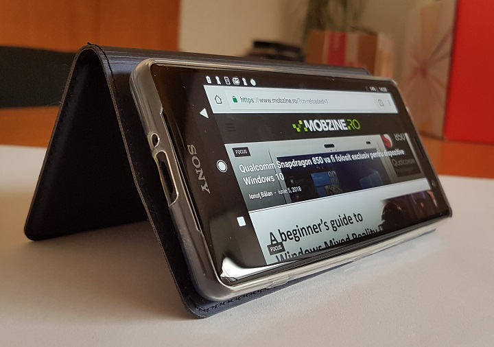 Mi-a plăcut din mai multe motive. În primul rând, fiind o husă de tip cover, protejează foarte bine și ecranul. Trebuie spus că Sony Xperia XZ2 Compact este un mic monstru, cu o putere de procesare care a ținut piept destul de bine în benchmarkuri unor flagship-uri mai celebre. De fapt, este versiunea mai mică a vârfului de gamă Xperia XZ2, care nu face niciun compromis din punct de vedere tehnic. Însă fiind mai mic decât majoritatea terminalelor actuale (ecran de 5 inchi, aspect ratio 18:9) lasă senzația că este și destul de fragil. Nu este deloc așa, pot să o confirm după aproape trei luni de utilizare.