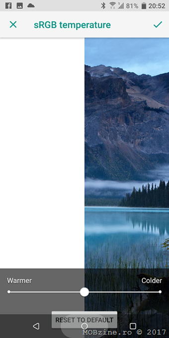 Cine vrea să se joace puțin cu setările legate de culori o poate face apelând la Color Profile din Settings, de unde poate alege să modifice temperatura sRGB după cum dorește.