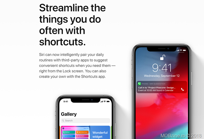 Siri Shortcuts e implementarea Apple vizavi de funcționalitatea IFTT, oferind o modalitate simplă de automatizare a unor operații repetitive. Prin Siri și shortcuts puteți crea operații în care să fie implicate mai multe aplicații și să adăugați comenzi speciale prin care Siri să facă cât mai multe lucruri.