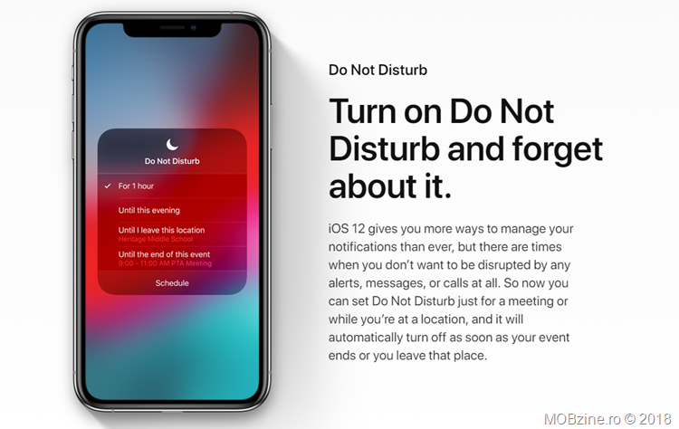 Cu noul Do Not Disturb nu o să vă mai treziți cu o tonă de notificări, până la dezactivarea modului nu veți mai vedea niciun fel de notificare. Iar cine vrea, poate activa funcția după un anumit program.