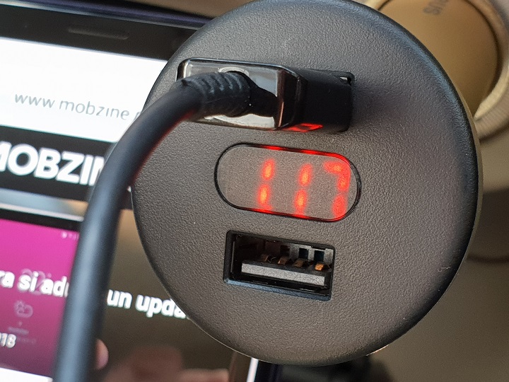 Baseus Shake-head cu display poate adapta două cabluri USB pentru a încărca simultan două dispozitive, cu până la 2,4 A fiecare. Este un motiv în plus pentru a orienta încărcătorul într-o direcție care să deranjeze cât mai puțin. În plus, acesta este prevăzut și cu un mic display pe care este afișat amperajul din timpul încărcării, dar și voltajul bateriei.