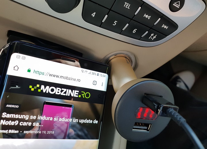 Printre dispozitivele pe care cei de la MobileDirect ni le-au trimis spre testare, am găsit și un incarcator auto Baseus Shake-head cu display. Un produs interesant, cu un soi de cap mobil, care se poate mișca într-un unghi destul de generos, în toate direcțiile, pentru a fi orientat astfel încât să încurce cât mai puțin în timpul condusului. Poate părea ceva banal, însă la unele vehicule priza de brichetă este plasată în dreptul schimbătorului și o cursă ceva mai lungă a acestuia ar putea încurca.