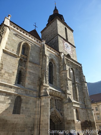 Asus Zenfone 5z și Sony Xperia XZ3 prezintă Biserica Neagră în ceață. Huawei Mate 20 Pro are detalii bune pe biserică, prea puține pentru pavajul din Piața Sfatului. Între iPhone Xs și Galaxy Note9 îl aleg pe primul pentru detaliile mai bune de pe acoperișul Bisericii Negre.