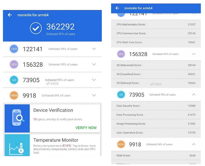 Scorul realizat de Snapdragon 8150 în AnTuTu Benchmark a fost de 362.292 puncte, cu mult peste cele 273.913 puncte ale lui Kirin 980, dar și peste scorul de 353.210 puncte al lui Apple A12 Bionic.