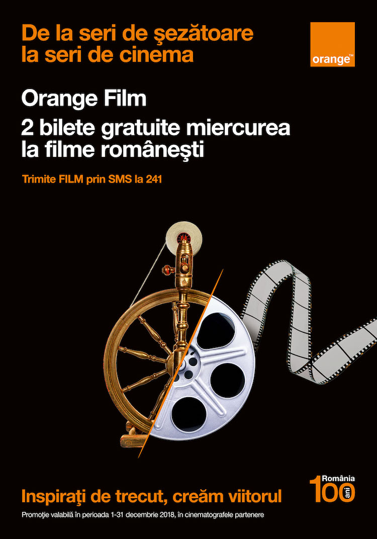 Și de menționat că în continuare, clienții Orange primesc două bilete la prețul unuia singur în fiecare miercuri, la toate celelalte filme care nu intră în promoția dedicată Centenarului Marii Uniri. Lista cinematografelor partenere poate fi accesată la pagina https://www.orange.ro/film/#cinematografele-partenere.