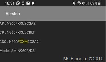În primul rând asigurați-vă că smartphone-ul vostru are instalată cel mai recent patch de securitate Android 8 (cel de decembrie), care are în seria build-ului ARL3 la final. Apoi verificați dacă aparatul are un ROM multi-CSC: porniți Dialer-ul și scrieți acolo *#1234# și verificați dacă în dreptul CSC aveți codul OXM.