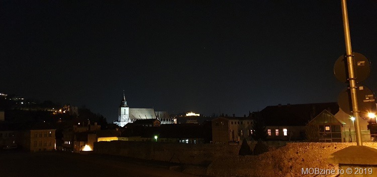 Huawei P30 Pro cu modul night, auto și HDR ne oferă și mai multe detalii: geamurile clădirii din spate și silueta muntelui Tâmpa.