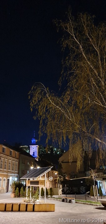 Huawei P20 Pro cu night, auto și hdr. Modul night oferă detalii bune atât pe turlă cât și pe clădirile din zonă.