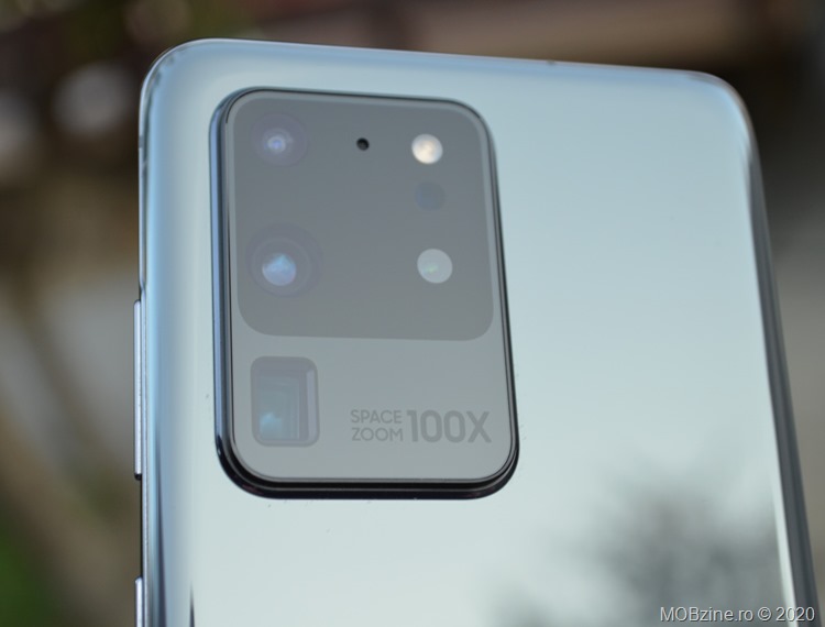 Pentru prima dată vorbim despre un senzor de peste 100 MP, care a stârnit pasiunea multor utilizatori și care în final s-a dovedit a nu fi o alegere chiar foarte bună. În același timp Samsung Galaxy S20 Ultra 5G oferă și o combinație de zoom optic 4x și 10x hibrid, putând în teorie să obțină un zoom 100x – în realitate asta e doar o poveste de maketing pentru că imaginea obținută la 100x zoom este doar o bucățică din imaginea de 48MP înregistrată la 4x zoom optic.