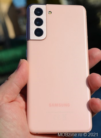Cu toate astea, mezinul Galaxy S21 are exact același design ca celelalte două modele din seria S21, cu plusul că se ține foarte bine în mână și aroape că nu îl simți prin buzunar.