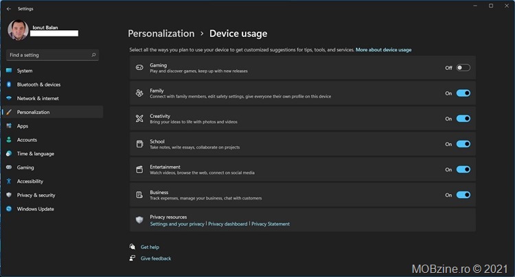 Alături de noul meniu de Start, o schimbare majoră în Windows 11 se regăsește în zona Settings, care este regândită ca să putem regăsi funcțiile mai ușor.