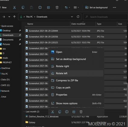 Windows Explorer din Windows 11 arată familiar, mai ales dacă ați folosit un build Windows 10 din Insider Preview. Sunt prezente noile icon-uri și noi meniuri contextuale.