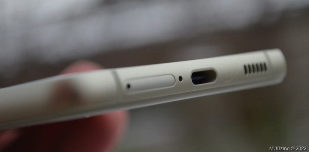 Iar în zona inferioară găsim fantele pentru nanoSIM, slot-ul USB Type-C și cel pentru difuzor.