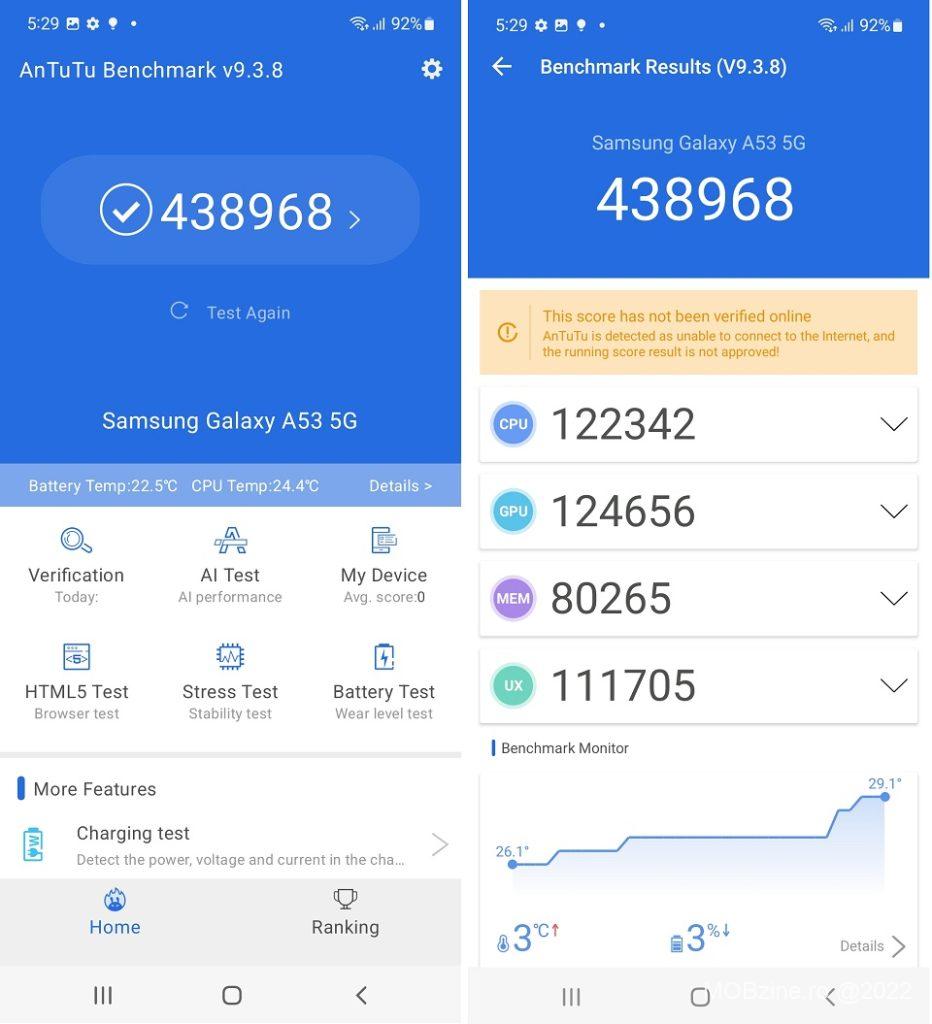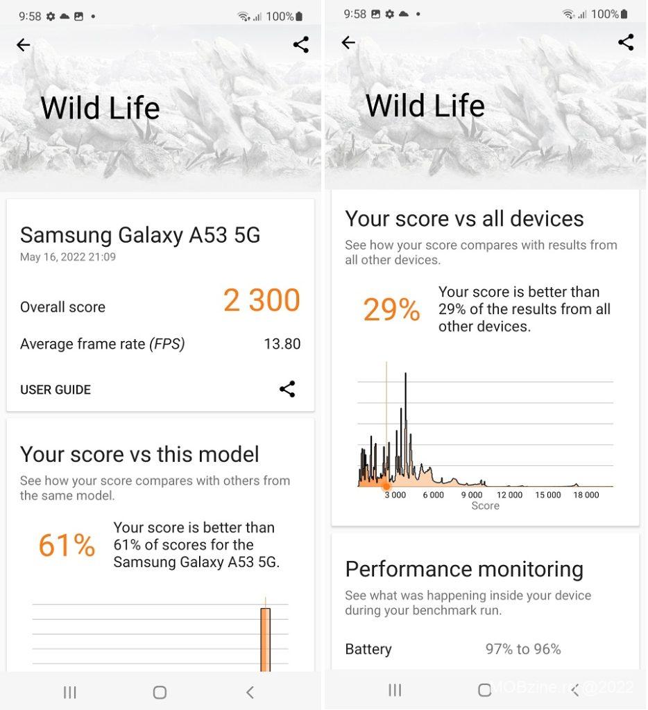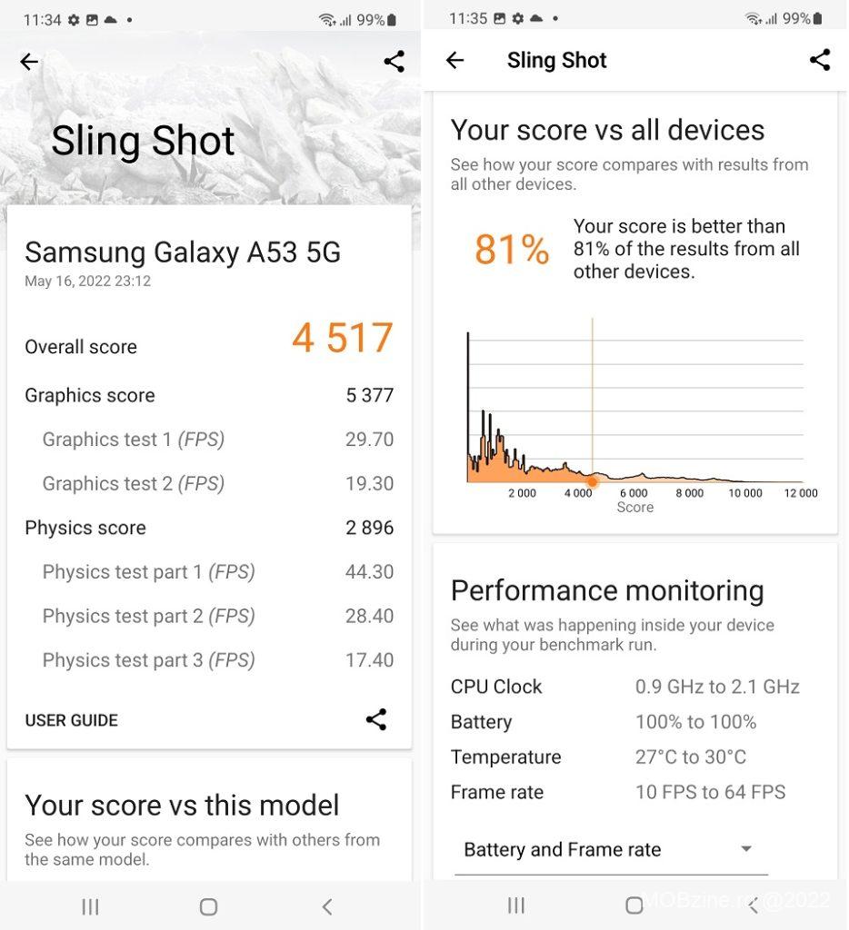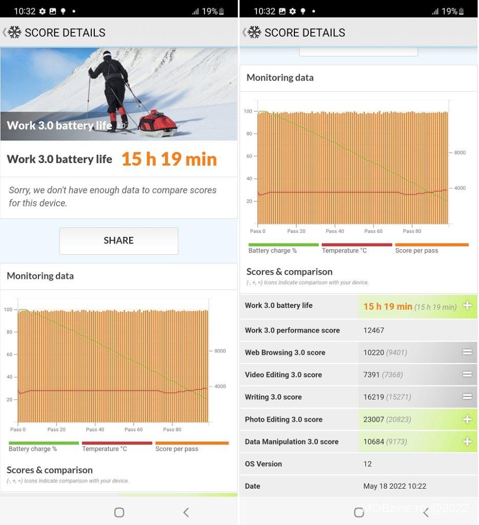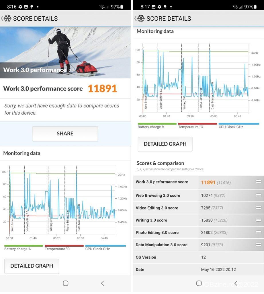 Tot în cadrul performanțelor am putea privi și partea de autonomie. Samsung Galaxy A53 5G se descurcă mai mult decât onorabil. Am rulat testul de baterie din PCMark și ceea ce a ieșit puteți vedea în capturile de ecran de mai jos.