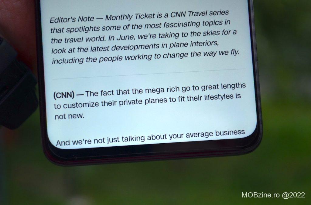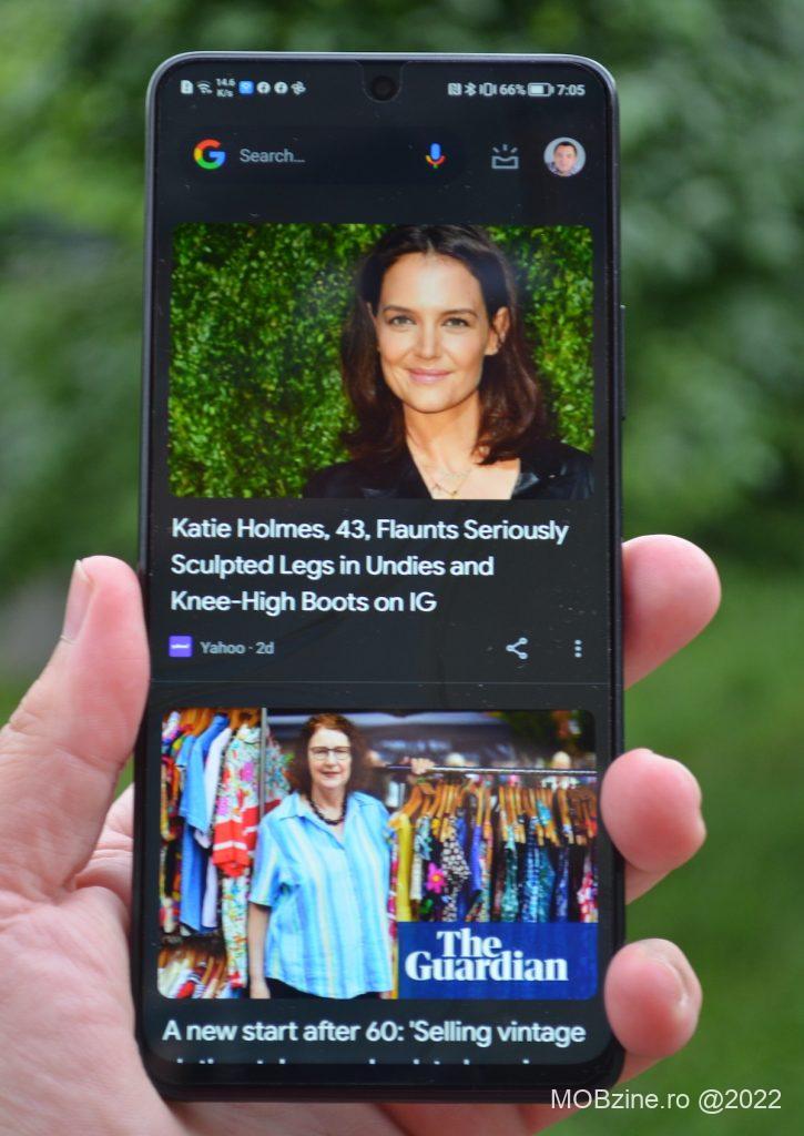 Obișnuit fiind cu display-urile OLED mi-a făcut plăcere să descopăr că informațiile se văd bine pe ecran, culorile sunt redate destul de exact și că dacă nu mi-a convenit intensitatea cu care acestea au fost afișate, am putut să activez opțiunea de personalizare și să trec pe modul Vivid, unde acestea devin mai intense. Pentru un smartphone din categoria de mijloc, Honor Magic4 Lite 5G se prezintă foarte bine la acest capitol, ținând cont și de faptul că vorbim despre un display IPS LCD și nu de unul AMOLED sau OLED. Bineînțeles că există diferențe în favoarea celor din urmă, numai că plusurile ar trebui să vină și cu un preț semnificativ mai mare.