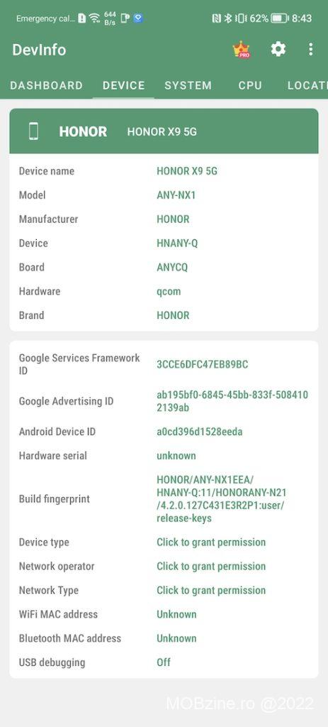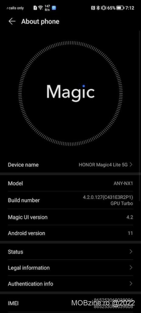Nu în ultimul rând mai trebuie să vă spun că Honor Magic4 Lite 5G vine cu Android 11 (patch-ul de securitate din luna decembrie, puțin cam vechi) sub forma Magic UI 4.2 și toate serviciile Google active, inclusiv magazinul de aplicații Play Store, soluția de plată Google Pay și Android Auto!