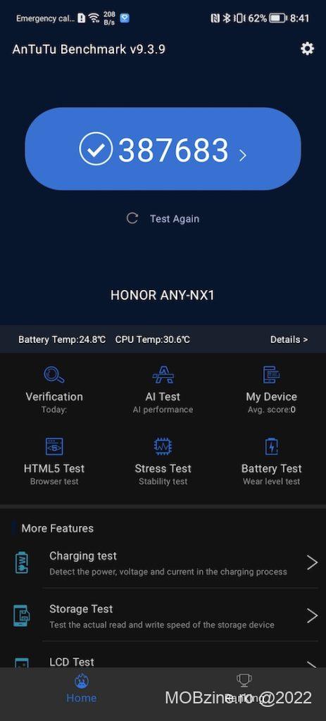 Cu această echipare Honor Magic4 Lite 5G nu stă chiar rău în ceea ce înseamnă performanța: 630 puncte în single-core, respectiv 1855 puncte în multi-core pentru Geekbench și 387683 puncte în AnTuTu Benchmark.