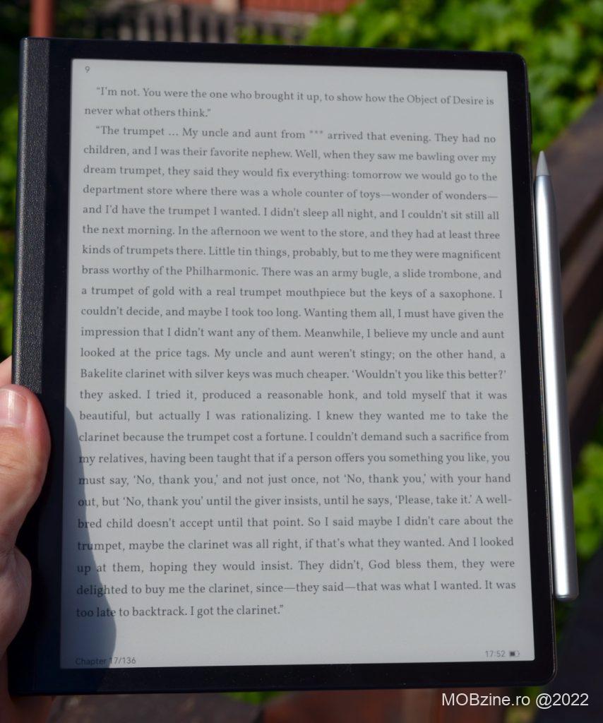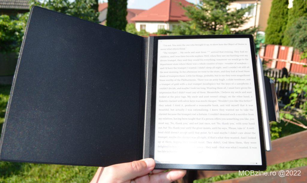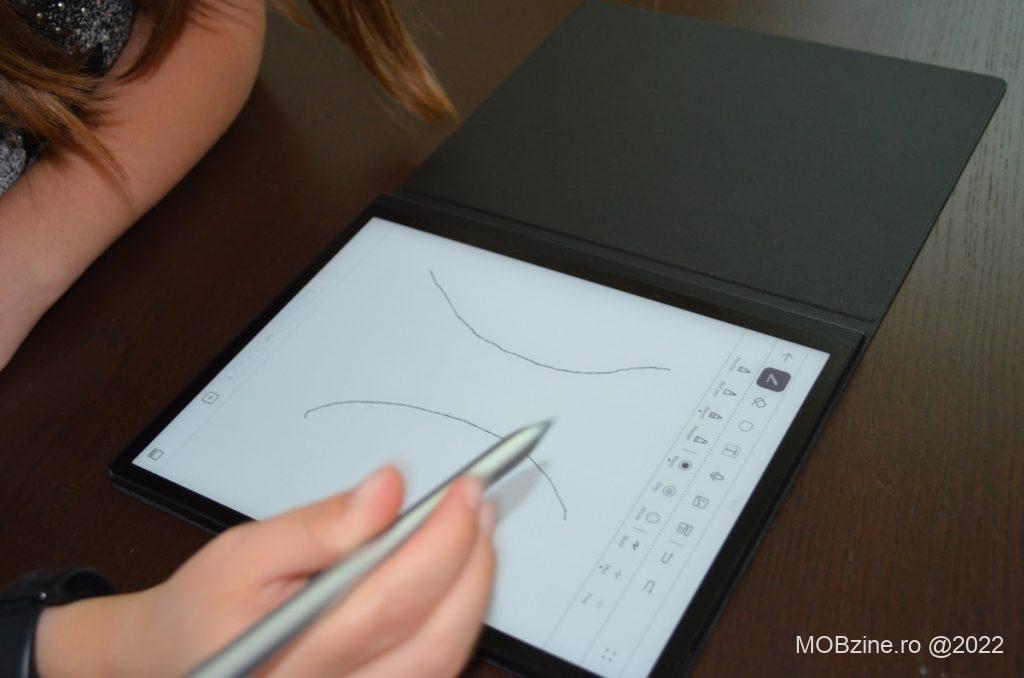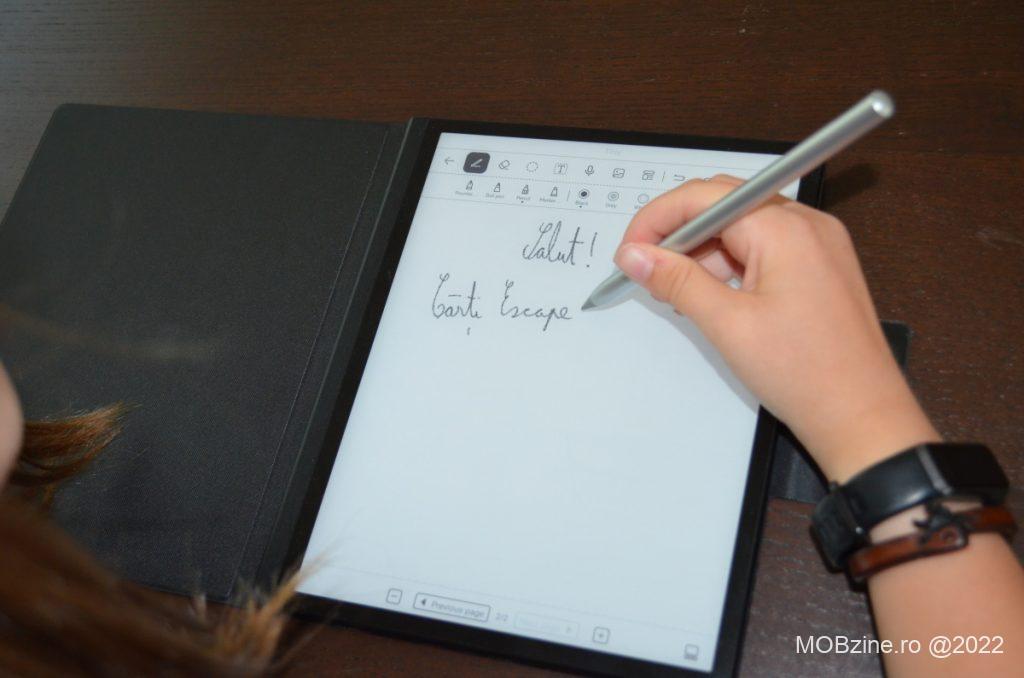 Nu în ultimul rând, scrierea cu M-Pencil pe display-ul E Ink este o experiență interesantă, foarte apropiată de cea în care scriem cu pixul pe hârtie. Am rugat-o pe fata mea să se joace puțin cu tableta și să îmi spună ce crede – răspunsul ei a venit prompt: ”ce interesant, poți scrie la fel ca pe hârtie, cu un nivel ridicat de precizie”.
