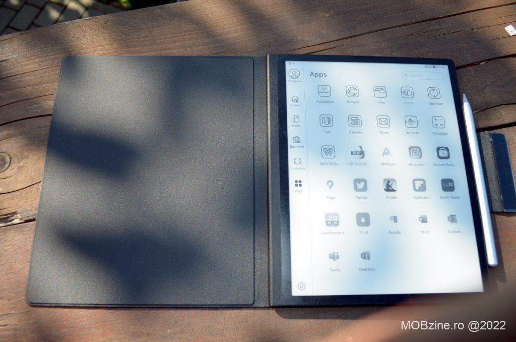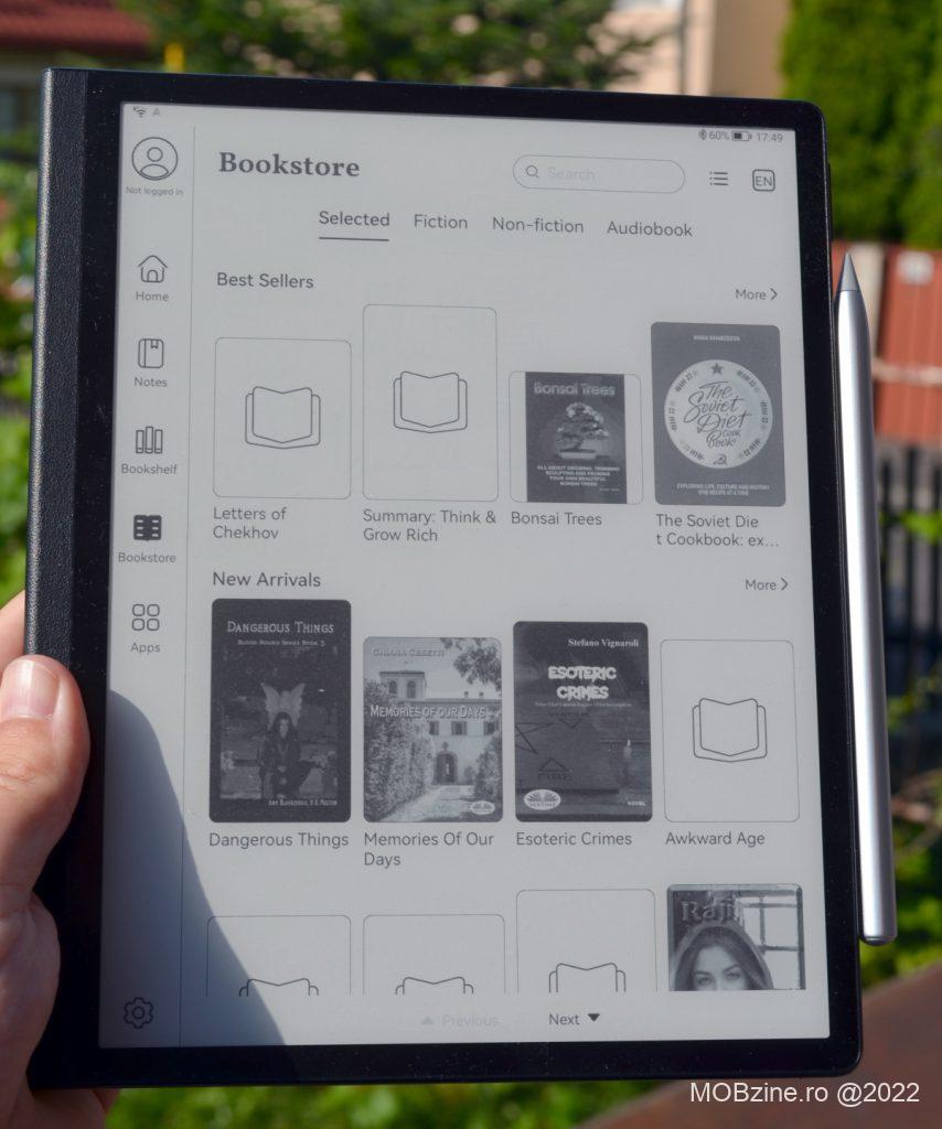 Ai acces inclusiv la un magazin de unde poți cumpăra cărți, însă oferta e destul de limitată – dar faptul că vorbim de o tabletă Android, îți permite să completezi oferta cu orice aplicație dorești, inclusiv să copiezi manual documente în format electronic. Apropo de asta, merge să pui suita Microfoft Office (dacă nu îți place soluția standard oferită de Huawei sub forma pachetului WPS Office), inclusiv cu OneNote (din păcate, în mod implicit nu ai suport pentru notițele luate cu M-Pencil sau recunoașterea scrisului de mână), Outlook sau clientul Teams.