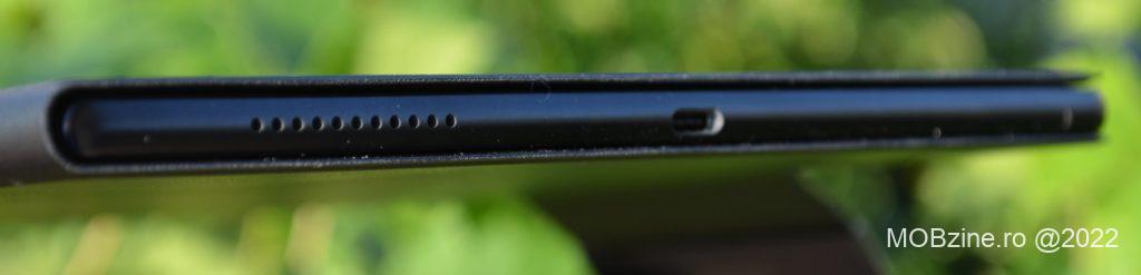 Tableta beneficiază de două difuzoare (unul sus și unul jos), care oferă o calitate deosebită, date fiind dimensiunile tabletei. Încărcarea se face printr-un port USB Type-C, același ce poate fi folosit și pentru transferul rapid de fișiere.