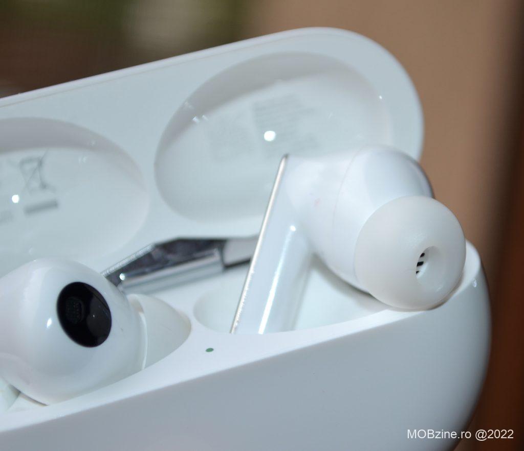 Ar mai fi de adăugat și faptul că setul FeeBuds Pro 2 are certificare de rezistență la apă IP54 – adică le puteți purta fără probleme și dacă plouă sau la activitățile ce implică mult efort fizic și automat transpirație. Certificarea se aplică doar căștilor nu și cutiei și trebuie să știți că în timp rezistența va scădea dacă nu le întrețineți corespunzător.