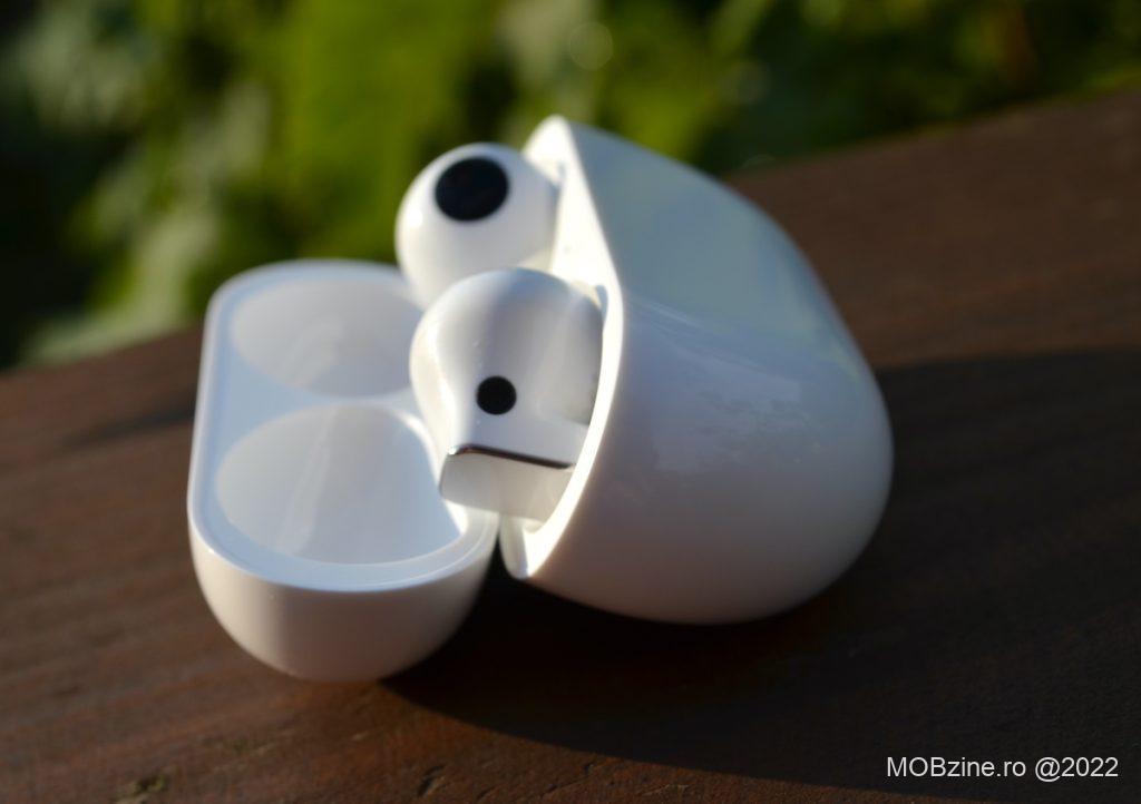 Văd că Huawei a ținut cont de feedback-ul utilizatorilor și în sfârșit a făcut o cutie care să nu se închidă singură, iar partea de prindere ca fiecărui căști este foarte eficientă, fără să fie nevoie de o putere prea mare atunci când vrem să le scoatem (așa cum se întâmpla pe unele dintre modelele precedente). Împreună, combinația cutie plus căști devin un companion zilnic ușor de purtat (merge să pui fără probleme cutia în buzunarul pantalonilor, fie și ei unii scurți, lejeri, de vară).
