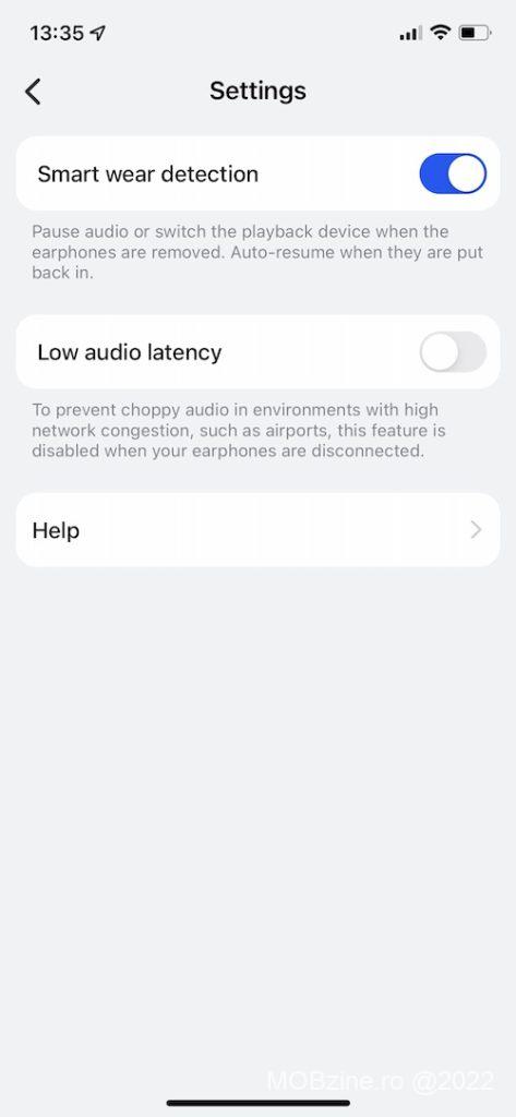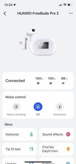 Iar vizavi de conectare, pe iPhone (în general pe smartphone) e nevoie de aplicația Huawei AI Life ca să puteți activa toate opțiunile de configurare. Căștile sunt văzute instant de telefon (pe iPhone se numesc NEMO_MUO0503) iar pe macOS sunt identificate ca Huawei FreeBuds Pro 2.