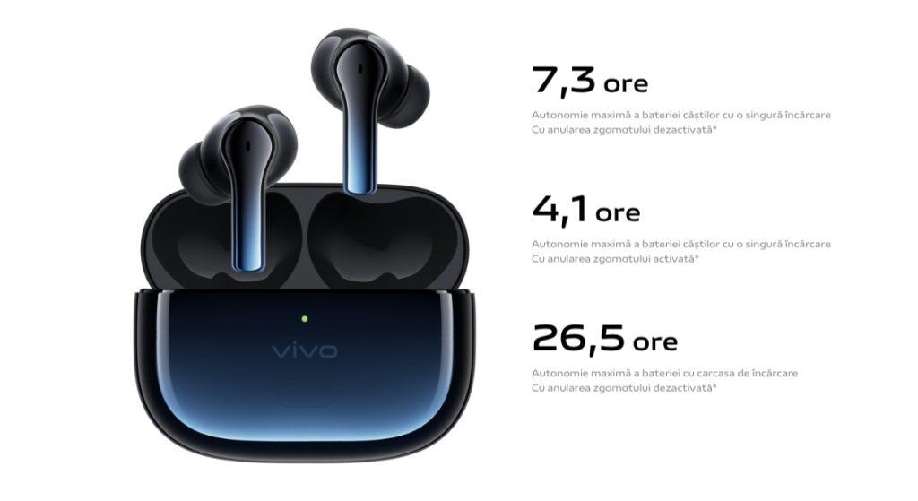 Pentru partea de multimedia lucrurile sunt mult mai bune: autonomia cu funcția de anulare a zgomotului pornită este de peste 3,5 ore, destul de aproape de cele 4,1 ore specificate de vivo. Și asta împreună cu smartphone-ul vivo X80 Pro și aplicația vivo activă.
