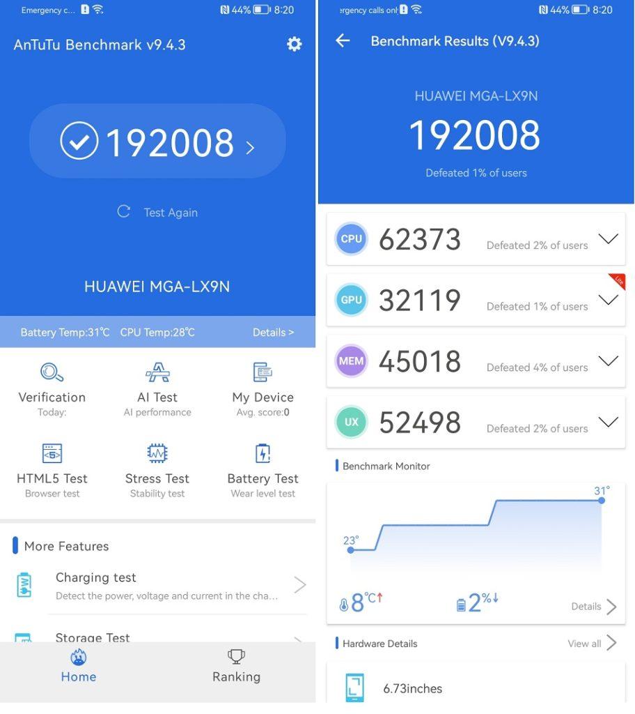 O a doua întrebare care vine aproape automat după ce vedem lista cu specificații tehnice pentru un dispozitiv, este legată de performanțele pe care acea configurație este capabilă să le genereze. Huawei Nova Y70 nu emite mari pretenții din acest punct de vedere. Nici nu ar avea cum, la nivelul său de preț.