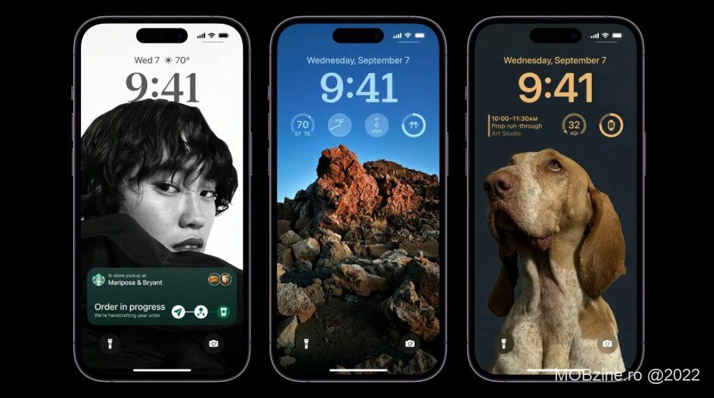 Noul lock screen din iOS 16 e făcut special pentru seria iPhone 14 Pro, permițând afișarea permanentă (da, e display always-on) a unui număr mare de informații prin widget-urile disponibile, pentru că în teorie rata de afișare se poate duce până la 1Hz. Da, Apple a preluat în sfârșit widget-urile de pe Android.