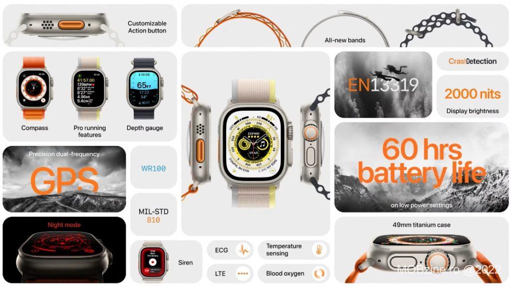Și nu în ultimul rând, Apple Watch Ultra: în leak-uri era identificat drept Apple Watch Pro. Este un ceas smart cu un design interesant, fără nicio îndoială, doar că prețul de 799 USD îl face inutil în fața soluțiilor Garmin, Suunto sau Polar.