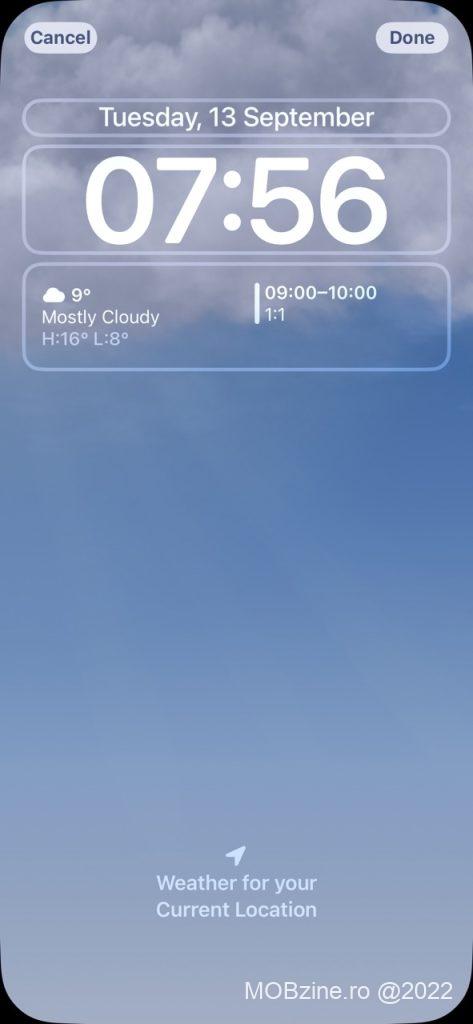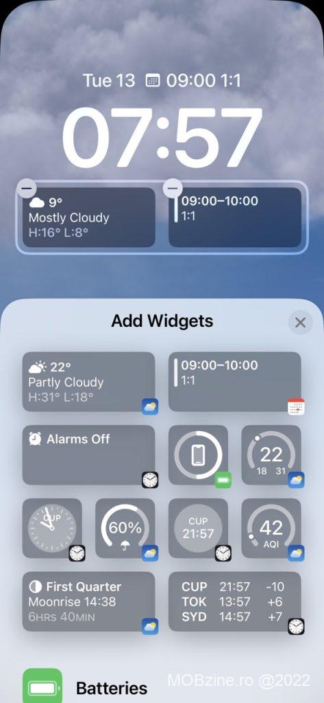 E important să știți că aveți doar două zone unde se pot pune widget-uri: linia superioară unde de obicei apare data și primul rând de sub ceas (unde intră 2 widget-uri mari sau 4 mici).
