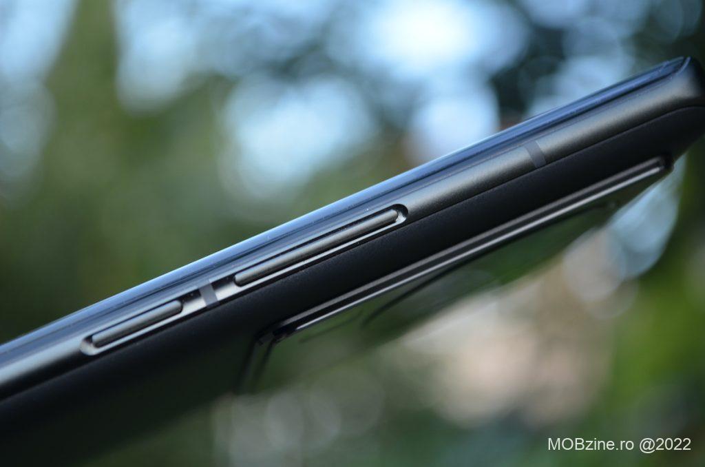 Un element de design care îmi place foarte mult la vivo X80 Pro este soluția simplă și eficientă propusă pentru butoanele de volum și cel pentru pornire/oprire, poziționate pe partea laterală dreaptă. Sunt suficient de subțiri pentru a nu deranja și suficient de bine reliefate pentru a putea fi folosite fără probleme.