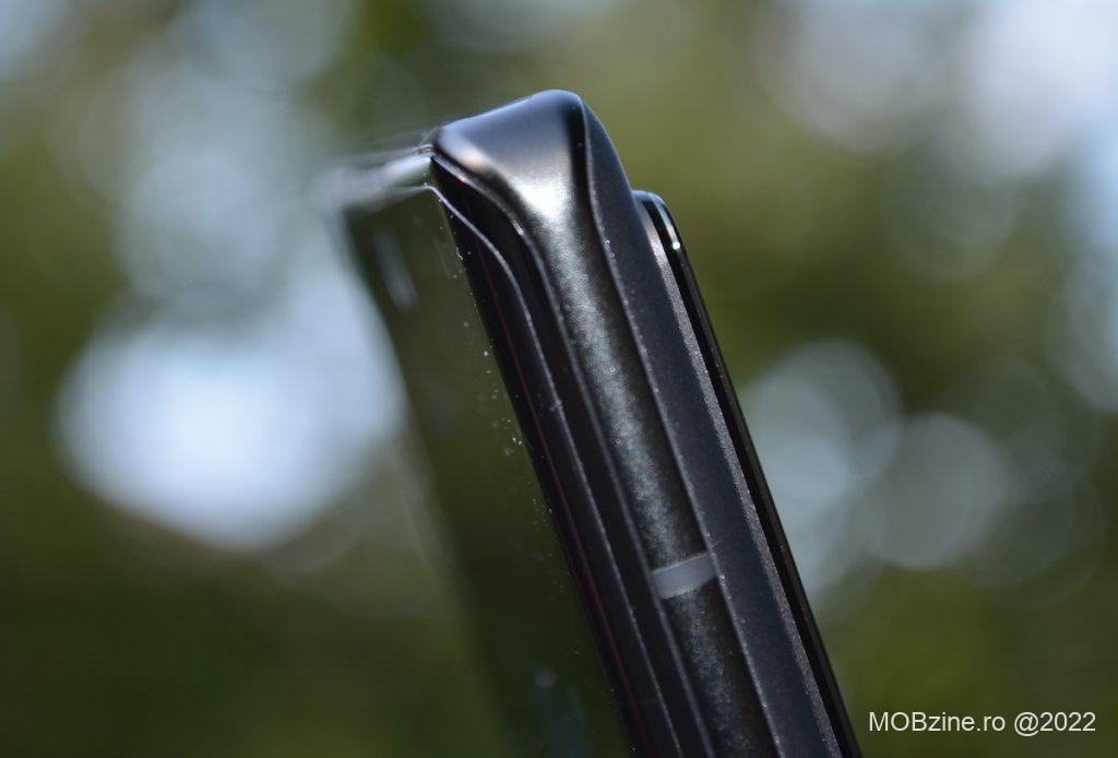 Eu am testat modelul cosmic black, cu spate realizat din material ceramic mat, pe o structură de aluminiu. Se poate observa ușor construcția cu margini rotunjite care pune bine în valoare și ecranul cu margini curbate.