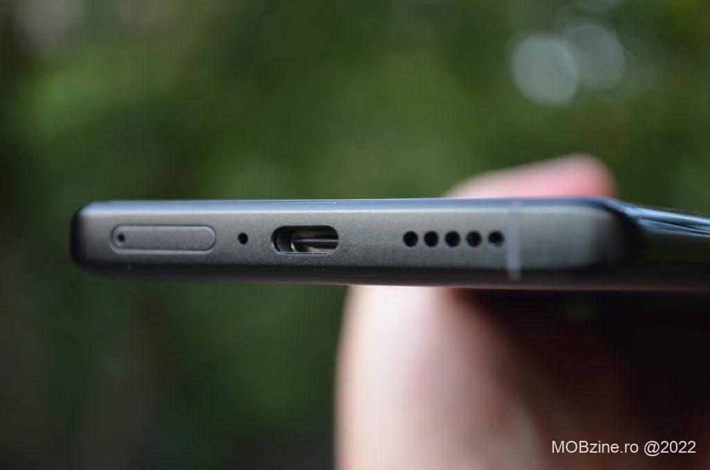 În partea inferioară carcasa beneficiază de slot-ul USB Type-C, cel pentru nanoSIM, unul dintre microfoane și primul difuzor, în timp ce partea superioară are doar o mică fantă pentru microfonul de zgomot ambiental și senzorul IR, chestie ce rar se mai găsește pe un flagship (în afara de a transforma telefonul în telecomandă, nu văd de ce ai avea așa ceva).