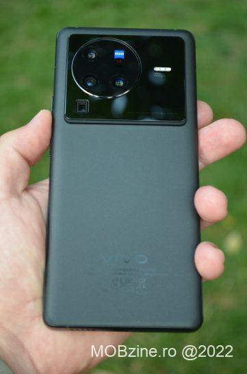 Fără nici cea mai mică îndoială vivo X80 Pro este definit de sistemul masiv de pe spate, ce înglobează soluția foto construită din patru camere foto (50, 8, 12 și 48 MP) aliniate cel puțin interesant, într-o combinație ce aduce cu seria Huawei Mate 40. Din cauza asta, vivo X80 Pro pare și se simte masiv, fiind descurajant la prima vedere. Trebuie să îl iei în mână, să te obișnuiești puțin cu el ca să îți dai seama că de fapt e ușor de manevrat și că proeminența de pe spate nu te deranjează sub nicio formă, mai ales dacă îl folosești cu husa din dotare.