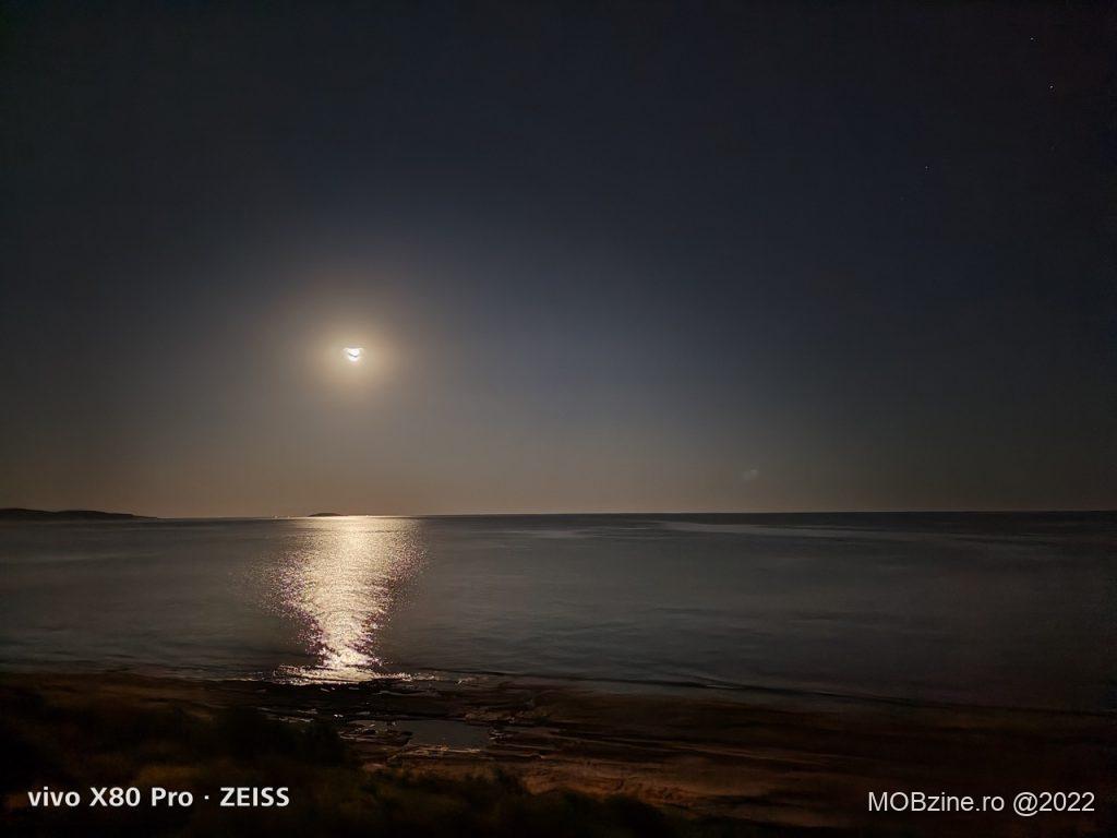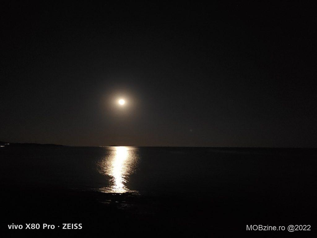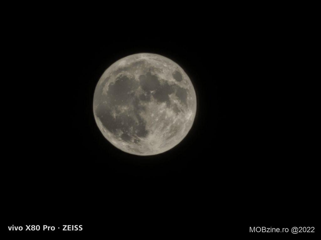 Urmează luna plină, cu zoom 5x optic și funcția de fotografiere a lunii activă, plus o imagine în penumbră.