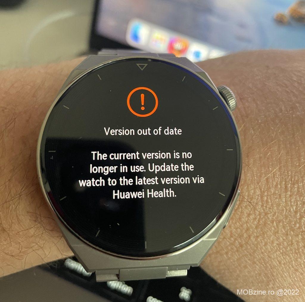 Și mi-am zis: ce chestie faină. Super, hai să mai încerc o măsurătoare. Numai că aici am rămas blocat: acum nu mai merge aplicația ECG de pe ceas pe motiv că e prea veche și din Huawei Health de pe telefon (iOS) nu am niciun update de firmware. Interesant este că și dacă leg ceasul pe un smartphone Android cu cele mai noi versiuni Huawei Health și HMS tot nu primesc niciun update de firmware.
