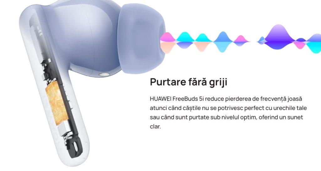 Acestea fiind spuse, Huawei FreeBuds 5i sunt un upgrade al generației FreeBuds 4i cu accent pe dimensiune și autonomie (cel puțin în anumite condiții). Pentru că este introdus și un algoritm dedicat ANC, pe lângă cele două microfoane, anularea activă a zgomotului funcționează mai bine, asta în condițiile în care vorbim de un produs de dimensiuni mai mici.