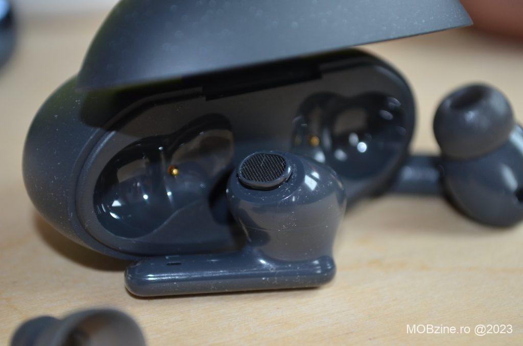 O treabă care nu îmi place neapărat este aceea că după mai multe folosiri, ușița carcasei în care sunt ținute căștile începe să aibă joc și devine foarte ușor de deschis, chiar și în mod accidental. Partea bună este că în interiorul cutiei căștile sunt prinse magnetic și nu pot ieși decât dacă sunt trase.