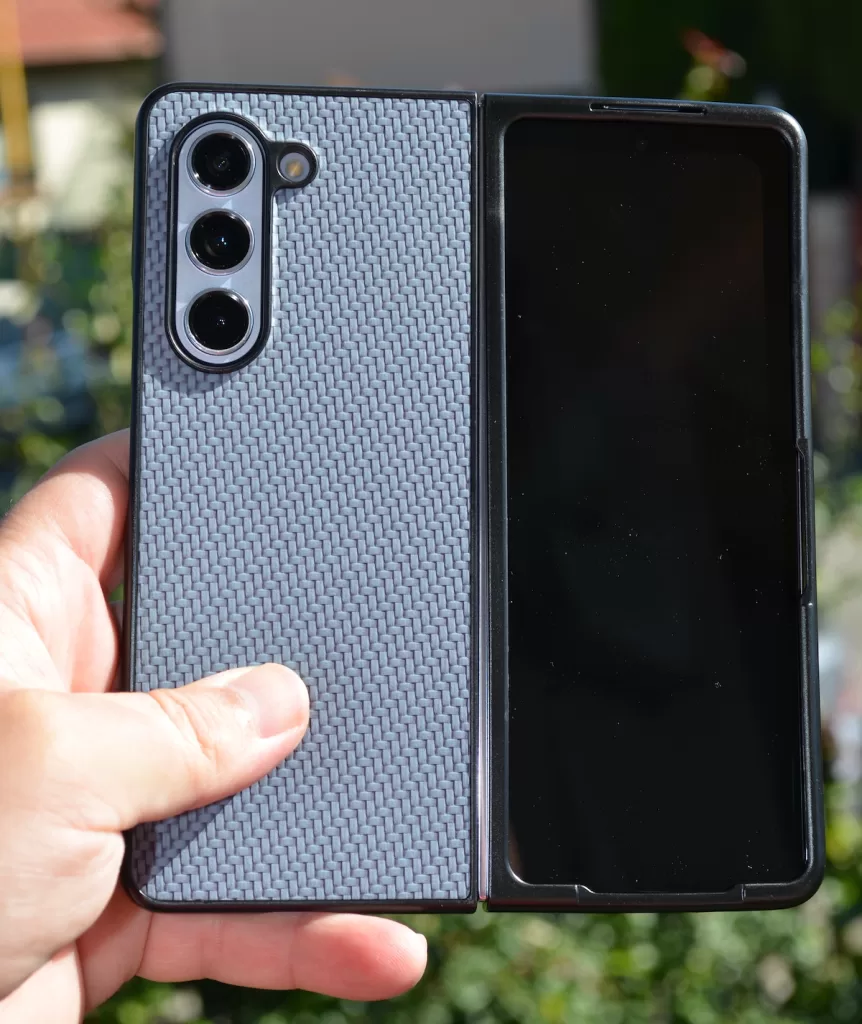 A doua husă este și cea mai faină pe care am văzut-o până acum pe un pliabil: DUX Ducis Aimo Black. Este prima husă de pliabil formată dintr-o singură bucată, pe care am avut ocazia să o testez. În mod deloc surprinzător aduce un spor de rigiditate telefonului și face manevrarea mai simplă.