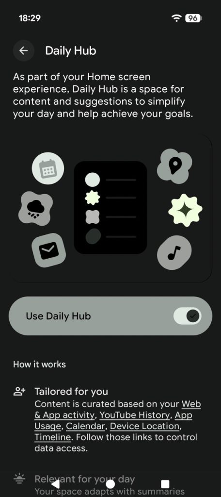Mă deranjează faptul că în Europa elementele AI aduse de Google pe seria Pixel 10 sunt precare Photo Studio nu merge, am putut activa Daily Hub (o chestie similară cu ce oferă Samsung prin funcția Now Brief, în care ar trebui să apară informații relevante despre ce ai făcut sau vei face) prin reinstalarea forțată a pachetelor, dar abia după ce am dezactivat elementele de securitate aduse de Android 16 (NU VĂ RECOMAND SĂ FACEȚI ASTA pentru că vă expuneți smartphone-ul la infecții malware), comenzile text de editare a pozelor nu apar etc.